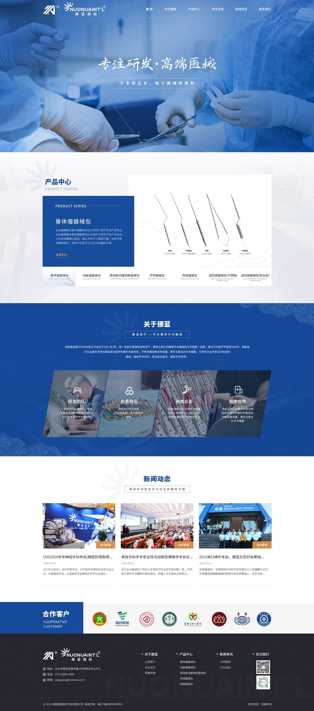 旗下湖南挪蓝医疗科技有限公司成立于 2021 年 3 月,主营医疗器械研发与生产,提供“研发 + 生产” 一体的一站式服务。公司专注为行业专家设计定制器械,以国内领先的产品质量为保障,致力于为广大医生带来极致的品牌使用体验,为集团的研发生产板块注入强劲动力。